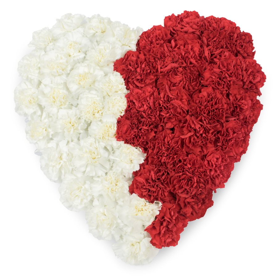 Introducing a floral masterpiece by Handy Flowers – a heart-shaped bouquet that melds the vibrant reds with the soft whites of carnations to create a symphony of elegance and emotion. Each bloom is carefully hand-selected for its supreme freshness and breathtaking beauty, reflecting our dedication to quality. The design is a celebration of contrasts, where every petal contributes to a stunning display of heartfelt artistry.